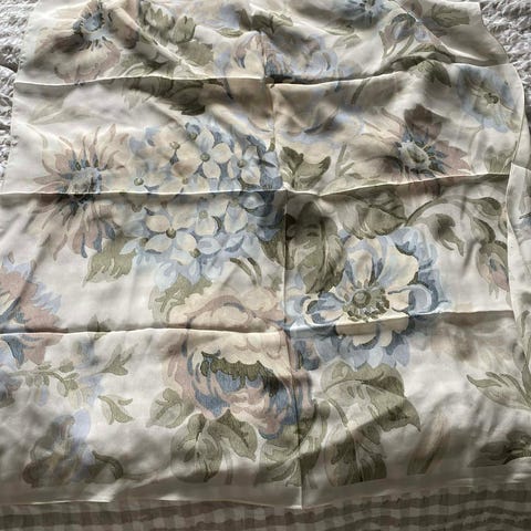 Skjerfet er en gave fra 1980 og kun brukt et par ganger før det dessverre bare ble liggende i en skuff.