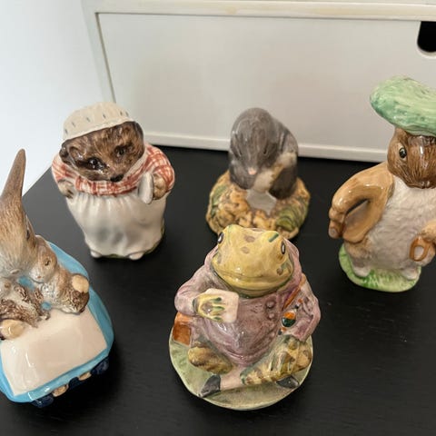 Metallringene som tidligere holdt kjedet mellom figurene sitter fortsatt på moren, men metallfestene på valpene er brukket av og selve kjedet mangler. Dette påvirker ikke stabiliteten og figurene står fint som dekor.