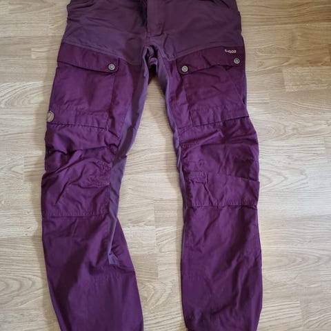 Fjällräven bukser for dame i størrelse L. Buksen er rød og laget i polyamid. Den har flere lommer foran og på sidene, samt knapp og glidelås i front. Materialet er slitesterkt og egnet for bruk utendørs. Nederst på bena er det justeringsmulighet med stramming. Passer til tur og fritidsbruk.