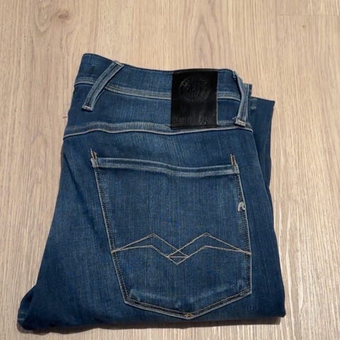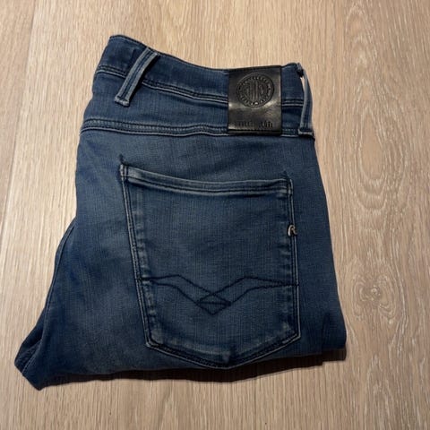 Replay jeans for herre i blå denim. Bukse i størrelse S med livvidde W32 og L30.