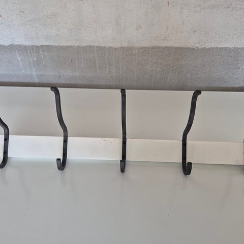 Hvit oppheng til jakker som skrus i veggen. Skruer medfølger ikke. Helt grei med noen merker.