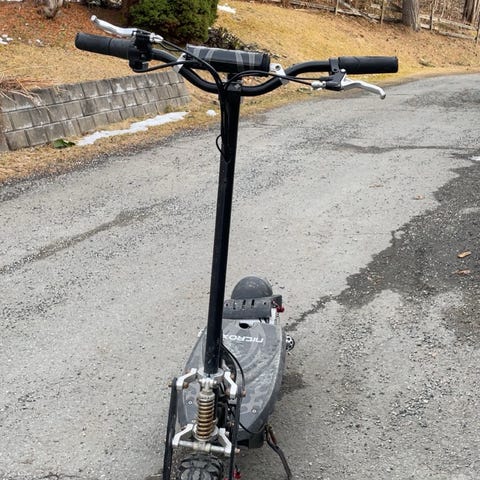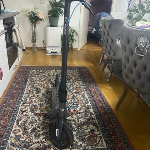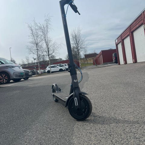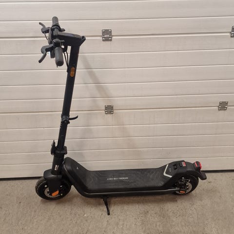 Elektrisk sparkesykkel i svart farge. Modellen har sammenleggbar konstruksjon med styre som kan felles ned for enklere lagring og transport. Utstyrt med to hjul, fotbrett med integrert batterihus og støtte. På styret er det digitalt display og betjeningsknapper, samt håndbrems. Egner seg som fremkomstmiddel på korte og mellomlange turer på asfalt og jevnt underlag for én voksen bruker, innenfor gjeldende regelverk for elsparkesykler.