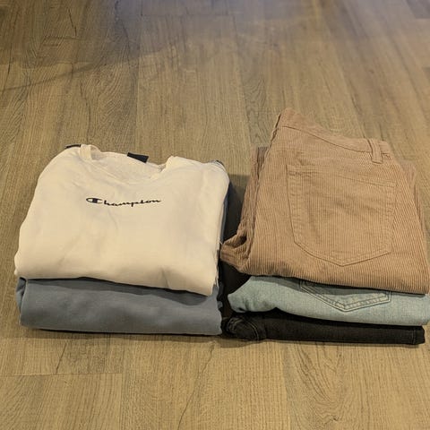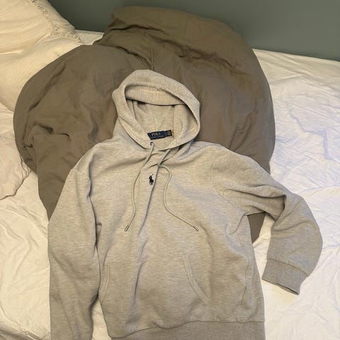 Grått sett: klær som selges ved rydding av rom. En Pier one T-shorte, en Nike T-shorte, en Zara genser. Og en Jack and Jones bokse som aldri er brukt! Ny pris: 500 ny, lappen er på<<. Og En champion hettegenser. En veldig fin pakke som vi velger og selge for 900🙌 tar imot bud.👍
