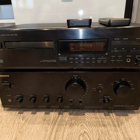 lite brukt av meg. Spiller fin, men vansker med cd skuffen som av og til ikke åpner seg. Komner med fjernkontroll