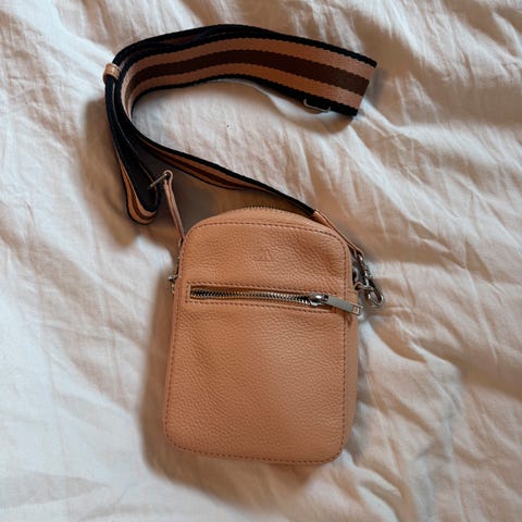 Med sitt smarte design og flere lommer, inkludert stikklommer, har du alltid plass til det aller viktigste. Vesken er kompakt med en størrelse på ca 21 cm x 15 cm x 8 cm, noe som gjør den lett å ta med seg overalt. Laget av imitert skinn, både stilren og bærekraftig, gir den et sofistikert preg til ethvert antrekk. Skulderremmen i 100% nylon er avtagbar og justerbar fra 70 cm til 120 cm, slik at du kan tilpasse den etter dine ønsker. Enten du skal på jobb, shopping eller en uformell sammenkomst, er denne vesken det ideelle tilbehøret for enhver anledning. Metall: gullarget. Selges da jeg har 2 stk.