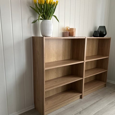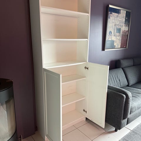 2 x 80 cm Billy bokhyller med skapdører til nedre halvdel.