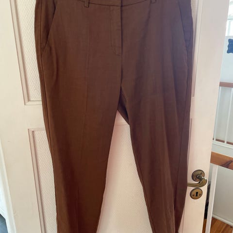 Kjempefin dressbukse fra InWear, style Zella Kickflare pant, str. 38. Nydelig gyllen brun/bronsjefarge. Klassiskt snitt. Stikklommer. 3/4 lang. 51% bomull, 45% polyester. Som ny. Kan sendes. Kjøper betaler frakt.