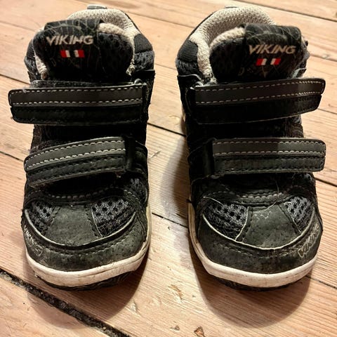 Selger høye vårsko /sneakers i str 24, merke Viking, farge svart. Godt brukt, men mye bruk igjen.