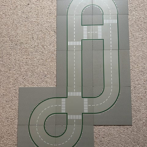 LEGO City byggesett med veiplater og klosser. Inneholder flere grå og grønne veiplater med rette strekninger, kryss og svinger, samt en blanding av LEGO-klosser i ulike farger og størrelser. Det følger også med flere byggeveiledninger til ulike LEGO City-modeller. Egner seg til bygging av bymiljøer og kjøretøy i LEGO City-serien.