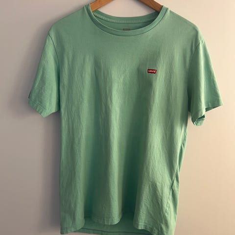 Levi's Standard T-skjorte for herre i størrelse M. T-skjorten er grønn og laget av bomull. Modellen har rund hals og kort erm, med liten Levi's-logo på brystet. Passer som enkel hverdags-T-skjorte eller som lag under genser eller jakke.