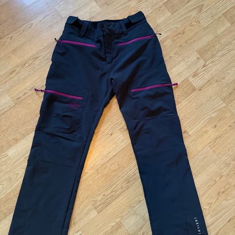 Dovrefjell turbukse for dame i størrelse S. Buksen er svart med kontrastfargede glidelåser foran og langs bena. Den har flere glidelåslommer, beltehemper og lukking med knapper og glidelås i front. Egner seg som fritids- eller turbukse.