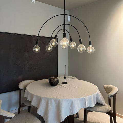 Lampen er pakket opp og montert, men ikke hengt opp, da den dessverre ikke passet der den var tenkt å henge.