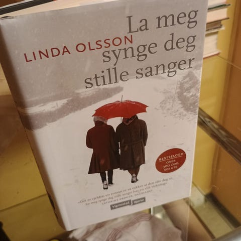 Linda Olsson «La meg synge deg stille sanger» bok. Roman i norsk utgave, innbundet. Utgitt på forlaget Vigmostad & Bjørke (Vigmostad Bjørke). Boken har omslagsillustrasjon med to personer under røde paraplyer på en vintervei.