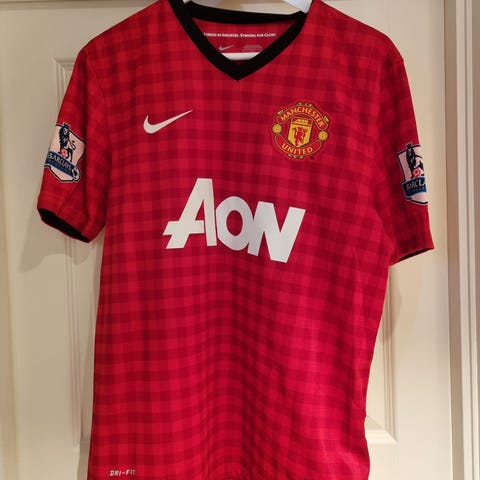 Nike Manchester United fotballdrakt med lang erm i rød farge. Drakten har klubbmerke på brystet, Nike-logo og AON som hovedsponsor foran. Premier League-merker er plassert på begge ermer. Materialet er typisk lett og pustende polyester egnet for fotball og annen trening. Passer til bruk på trening, fritid eller som supporterutstyr for Manchester United-supportere.