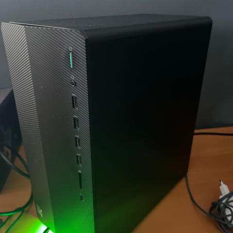 Dette er for deg som ønsker en liten kraftpakke enten til gaming eller kontorarbeid. Satt opp klar med Windows 11 Pro, fjernet bloatware og installert alle drivere. Bluetooth og Wifi AC, usb c + kortleser.