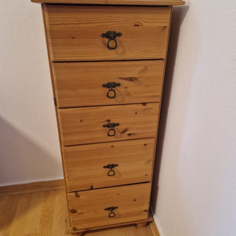 Selger en fin kommode med skuffer i forskjellige størrelser :) Brukt på barnerom.