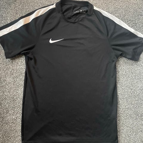 Nike Dri-Fit fotballtrøye for menn i størrelse M. Passer bra til fotballtrening. Denne er bruk maks 10 ganger og er i god stand. Den er og for deg som liker barn og ser etter noe billig. Send melding om du lurer på noe😊