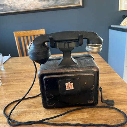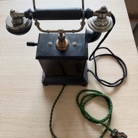 Antikk bordtelefon fra A/S Elektrisk Bureau, Oslo. Trolig Modell 1934 / eldre EB-telefon med original løvelogo. Selges som dekor-/samlerobjekt.