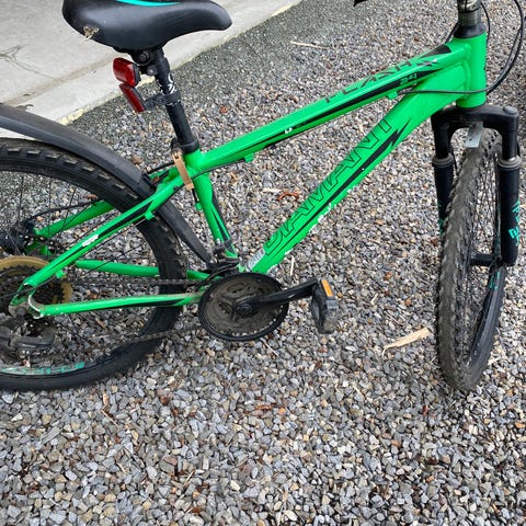 Nakamura 7005 Alloy Hardtail. Aluminum. Alt fungerer som det skal. Begge bremser og sykkelbjelle fungerer. Kun sykkelstøtte mangler.