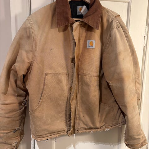Flott eksemplar av en vintage Carhartt Detroit J01! Dette er en av Carhartt's mest ettertraktete Detroit jakker. Denne er ca XL/ 2XL avhengig av hvordan man ønsker at den skal sitte, men er nærmere XL enn 2XL.