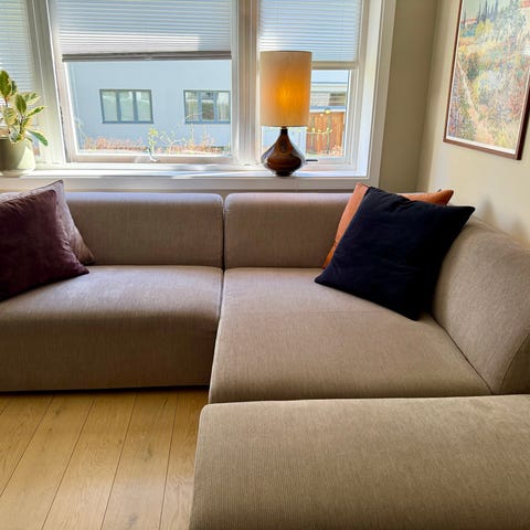 Perfekt for tv-stue og kan også brukes som gjesteseng med puffen.