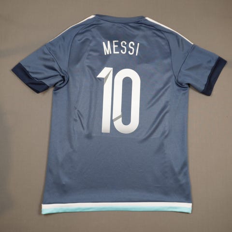 Adidas Argentina hjemmedrakt fotballdrakt Messi 10 i størrelse M. Drakten er i de klassiske hvite og lyseblå vertikale stripene med svart detaljfarge. På ryggen står navnet «Messi» og nummer 10. På brystet er Argentinas landslagslogo og Adidas-logo. Halskant og ermer har svarte detaljer. Produsert 05/23 ifølge innvendig merkelapp. Passer som supporterdress eller til fritidsbruk for voksne i størrelse M.