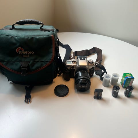 Canon t50 analogt speilreflekskamera i svart. Kameraet bruker 35 mm film.