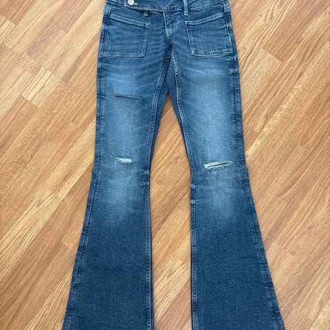 Helt ny Gina Tricot bukse i denim fra young 14+ i størrelse XXS selges, lapp fortsatt på. Buksen er i blå denim med slitte detaljer foran. Den er kun prøvd å selges da den blir litt for liten for meg.