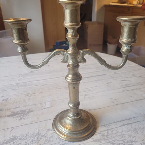 Trearmet lysestake i messing/ bronse