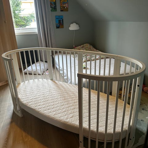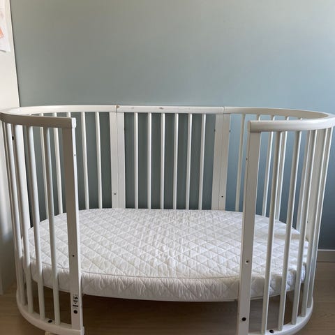 Stokke Sleepi sprinkelseng i hvit. Komplett, men har byttet ut noen skruer med uoriginale. Selges demontert. Litt slitasje noen steder, men fremstår velholdt og i god stand. Kan justeres i størrelse og høyde ettersom barnet vokser. Følgende følger med: