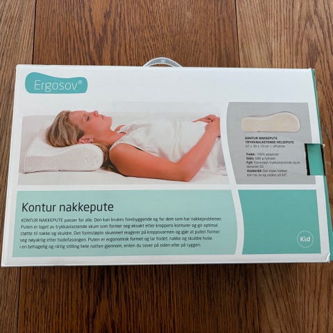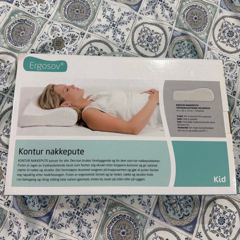 Kid Ergosov Kontur Cooling nakkepute i størrelse 47x30x10 cm. Puten har konturformet utforming for nakke og hode. Trekket er i tekstil med strukturmønster i hvit farge. Fyll består av trykkavlastende materiale (550 g viskoelastisk polyuretan-skum). Trekket kan tas av og vaskes etter vaskeanvisning på lappen. Egnet som støttepute til nakke ved søvn eller hvile.