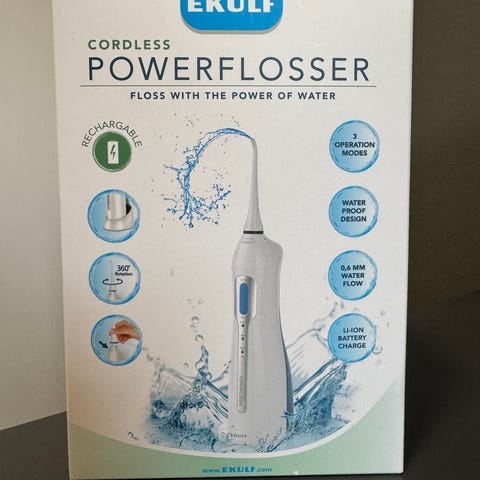 Ekulf Powerflosser Cordless Elektrisk munnskyller er en elektrisk, oppladbar munndusj som benytter vann for å fjerne plakk og bakterier mellom tennene.