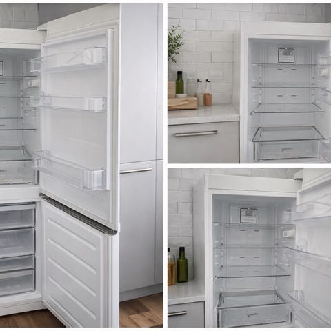 Selger et pent og velfungerende kombiskap fra LG (modell GC-B399BLQA). Kjøleskapet har et moderne design i børstet stål som passer inn i de fleste kjøkken.