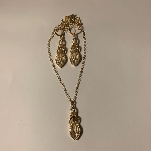 Smykkesett med korsoredobber og korsanheng, 2cm. Stål halskjede 50cm fra enden til enden lang.