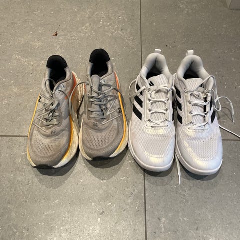 New Balance løpesko i størrelse 45. Modellen er laget for løping og har overdel i pustende materiale med snøring foran. Skoene har mellomsåle med demping og yttersåle med mønster for grep på underlaget.