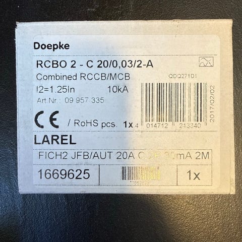 - Type: RCBO jordfeilautomat, elektronisk