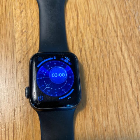 Selger en brukt Apple Watch Series 6 44 mm i svart. Klokken fungerer som den skal. Klokken er har noen riper i glasset, samt en litt mer markert skrape nede i høyre hjørne (se bilde. Denne er dog utenfor synsfeltet på skjermen.