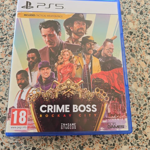 Crime Boss Rockay City Playstation 5 spill. Fysisk utgave på disk i standard PS5-cover. Spillet er et actionspill med krimtema, og er merket med aldersgrense 18 år. Egnet for bruk på Playstation 5-konsoll med støtte for én spiller og flerspillermodus der dette er tilgjengelig i spillet. Inneholder omslag, disk og trykt innhold som vist på bildene.