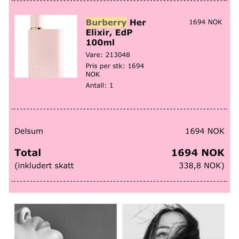 Burberry Brit parfyme for kvinner selges. Flasken er 100 ml, og ca halvparten er igjen. Kan sendes eller hentes i Oslo.