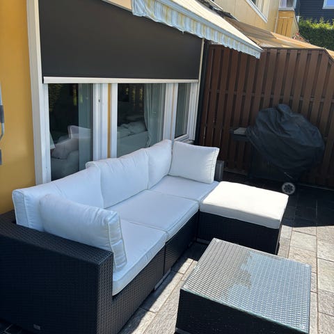 Har brukt kun en seasong. Ute bord med 4 glassplater følge med. Selges pga flytting.