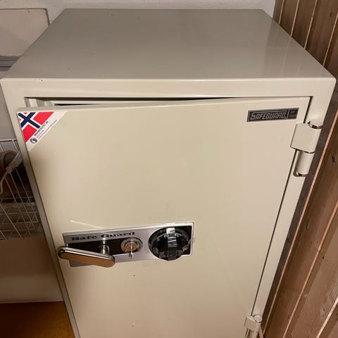 Protector safe med elektronisk kodelås i svart metall. Safen har frontpanel med talltastatur og dreiehjul for åpning. Innvendig rom er egnet for oppbevaring av mindre verdisaker, dokumenter eller kontanter. Skapet har forborede hull i bakvegg for eventuell fastmontering i vegg eller møbel. Egner seg til bruk i bolig, kontor eller tilsvarende miljøer der man ønsker enkel, låsbar oppbevaring.