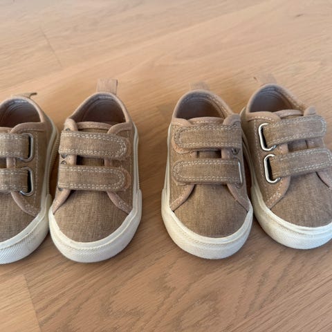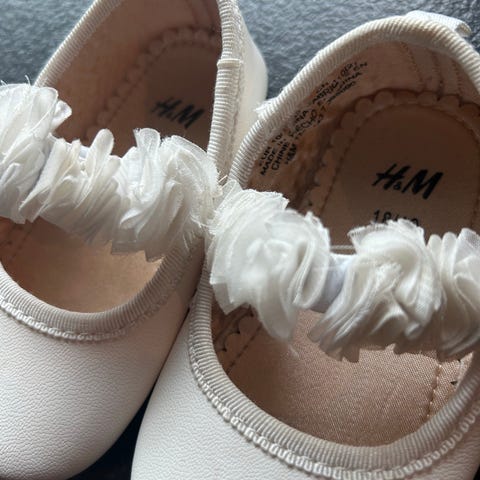 H&M babysko unisex i størrelse 18. Pakken inneholder flere par sko i ulike modeller, blant annet tekstilsko i rosa, sandaler i lys naturfarge og myke tøfler i lys farge. Skoene er beregnet på små barn og passer til bruk inne og ute avhengig av modell. De er lite brukt men har noen bruksmerker.