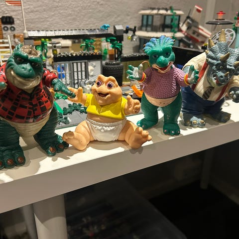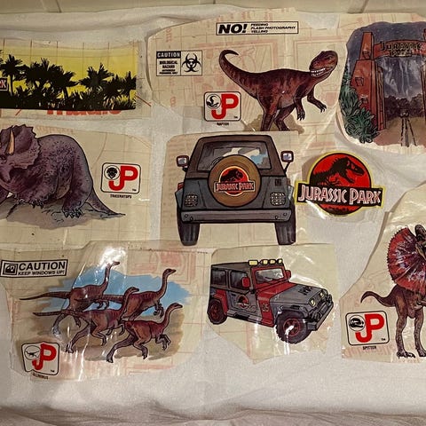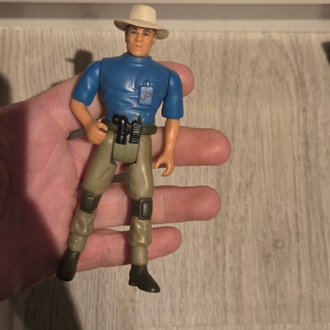 I følge Google så er dette 1997 figurer fra jurassic park, men aner ikke om de faktisk er det. Klarer ikke tyde at det står kenner på noen av de..