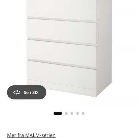 Selger en IKEA MALM kommode med speil i hvit farge. Praktisk kommode med flere skuffer som passer fint på soverom, gang eller garderobe.