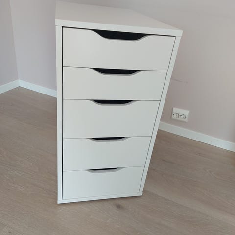 Kommoden har noen små merker etter bruk, men er ellers i god stand og alle skuffer fungerer som de skal.