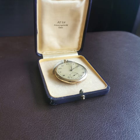 Vurdere selge en godbit av ett stort flott lommeur i 14k gull. Dobbel lokk, 14k stempel på både ytre lokk og indre lokk. Tikk og går fint.