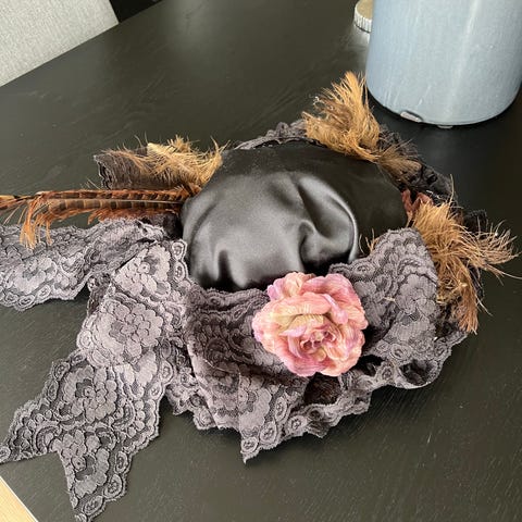 Svart glitter pannebånd med fjær. Kan brukes av voksne og barn.