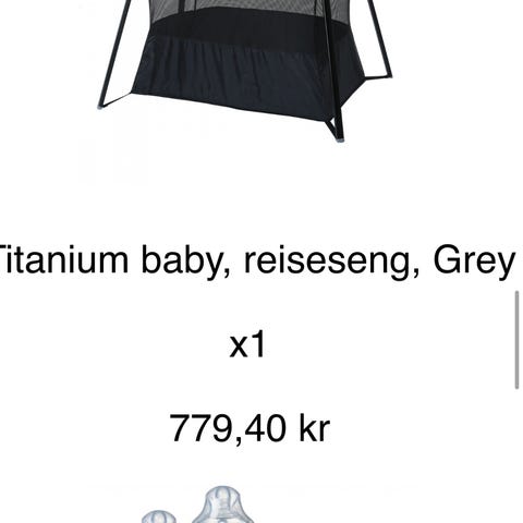 Pent brukt reiseseng med nyfødtdel. Veldig lett å slå sammen, med bære/oppbevaringspose.