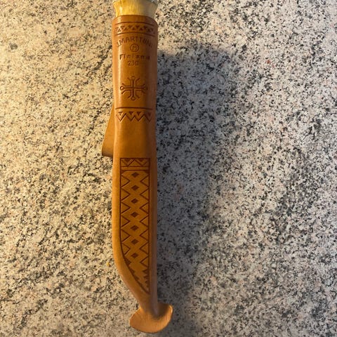 Selger denne ukjente flotte samekniven med 8" blad. Kniven er sylskarp. Sendes mot forskuddsbetaling via vipps.