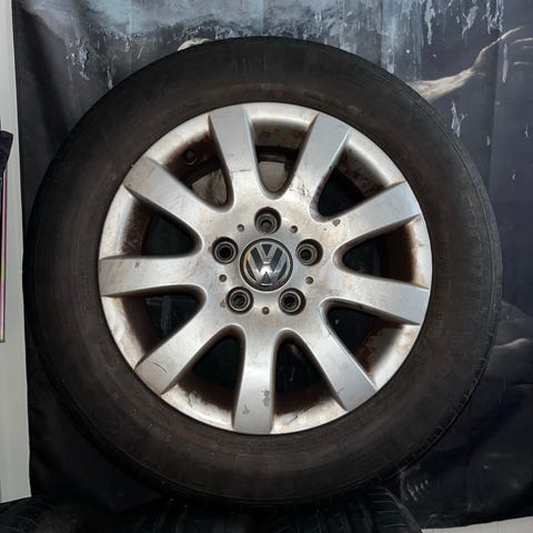 Jeg selger tre felger som har stått på en VW Golf 2011. Bilen er solgt og vi hadde disse igjen. Står på helt ok sommerdekk på 2 av felgene (3 mm) og den siste har et litt bedre (5mm). Du får også med et dekk som ikke er på felg på 4 mm. Gi bud eller kontakt meg om det er noe😁